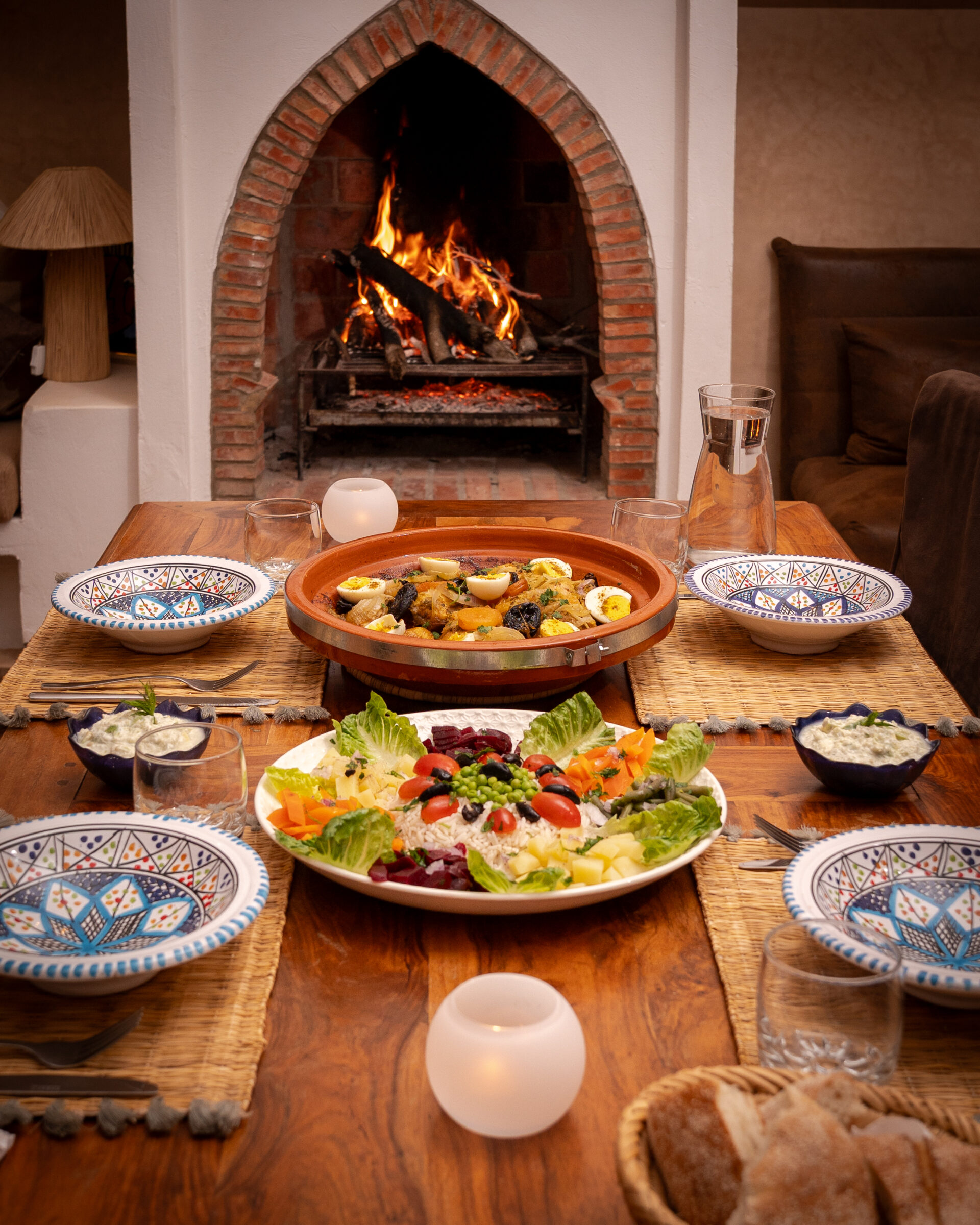 Chaque jour, notre cuisine met à l’honneur des plats faits maison, inspirés de la tradition marocaine et des produits de saison, à savourer dans le calme de la maison ou au jardin.